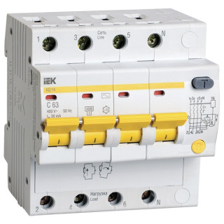 - Дифференциальный автомат 4Р 63А 30мА АД-14 IEK