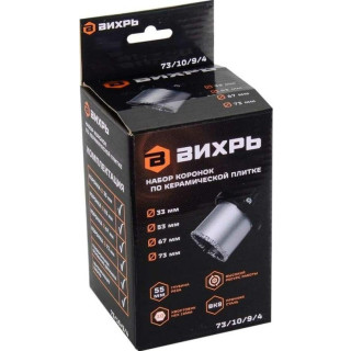 - Набор коронок по керамической плитки 33-53-67-73 мм Вихрь